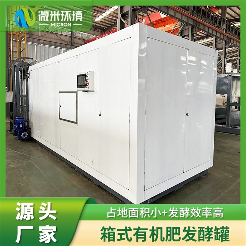 微米环境箱式有机肥发酵装置,是有机肥生产线中发酵设备的其中一种,微米环境箱式有机肥发酵设备,是一种快速发酵有机肥设备,二十四小时内就能将餐厨垃圾、动物粪便等转化成没有臭味的高效有机肥。微米环境箱式有机肥发酵设备,结构紧凑,占地面积小、起温速度快,发酵效率高、采用自动化控制系统,操作简便。设备合理的通风系统和温控系统,可使发酵菌对有机废弃物进行快速分解、除臭、干燥,能确保有机肥料的品质和稳定性,微米环境箱式有机肥发酵设备,广泛适用于餐厨垃圾发酵、畜禽粪便发酵、农作物秸秆发酵、饲料化发酵以及养殖场、有机肥生产线等。