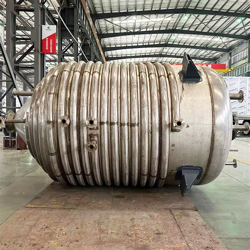 立式反应搅拌设备由釜体、釜盖、夹套、搅拌器、传动装置、轴封装置、支承等组成。搅拌形式一般有锚式、桨式、涡轮式、推进式或框式等,搅拌装置在高径比较大时,可用多层搅拌桨叶,也可根据用户的要求任意选配。并在釜壁外设置夹套,或在器内设置换热面,也可通过外循环进行换热。加热方式有电加热、热水加热、导热油循环加热、远红外加热、外(内)盘管加热等,冷却方式为夹套冷却和釜内盘管冷却,搅拌桨叶的形式等。支承座有支承式或耳式支座等。
